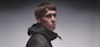 En ung man med kort brunt hår och rutig jacka står mot en enfärgad bakgrund och tittar lite åt sidan.